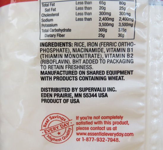 Ingredient list of Essential Every Day brand of puffed rice